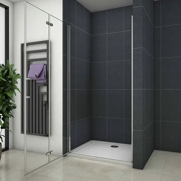 Maximise space without compromising on style with the Crown 700mm Frameless Bi-Fold Shower Door —a sleek, compact solution ideal for smaller bathrooms, en-suites, or alcove installations.